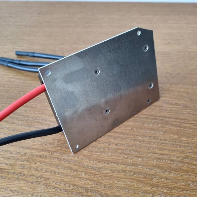 - The VESC controller is mounted on a 2,5 mm (~0,1") thick aluminium heatsink with integrated connector cover.